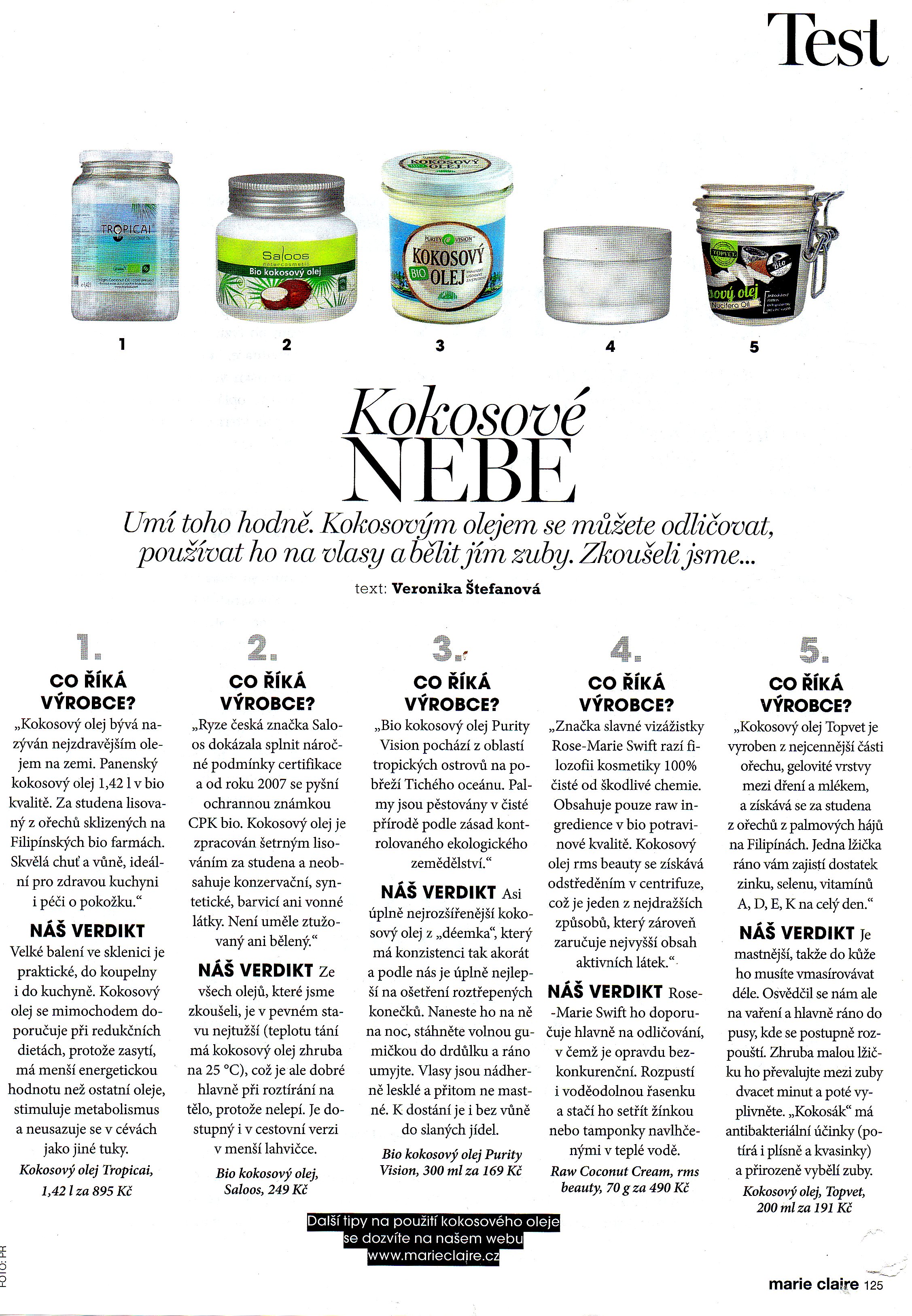 V této části vám dávám k dispozici materiály, které si můžete prostudovat před kurzem nebo až po jeho konání pro doplnění informací.Test Kokosových olejů z časopisu Marie Claire